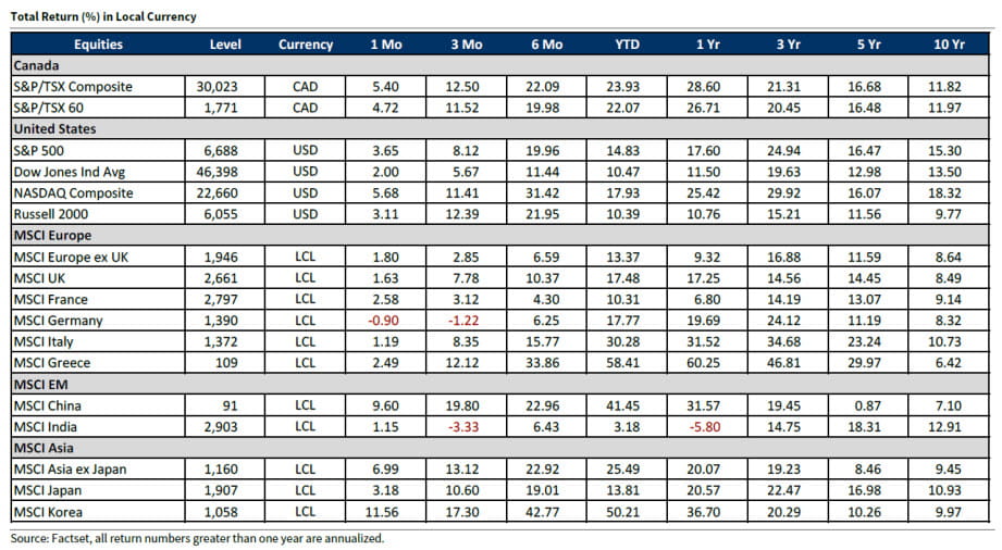 After a turbulent first four months of 2025, North American stock markets staged an incredible recovery to close out the first half of the year. A calm settled over both asset prices and investors as the heightened volatility waned. This tranquility not only continued through the end of the third quarter but became even more pronounced. Investor sentiment, which had sunk so low in early April, brightened considerably as the markets overcame every potential stumbling block standing in their way. There was no shortage of headline events that could have possibly upset the balance once again – the passing of a controversial tax bill in the US, escalating geopolitical tension, sticky inflation, discord between the Trump administration and the Federal Reserve, etc. – yet through it all the markets kept chugging along.